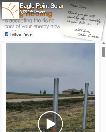 Eagle Point Solar of Dubuque, Iowa, leads the way in solar installations in Illinois, Iowa, and Wisconsin. Our solar projects span a large range of applications including municipal, commercial, residential, academic, agriculture and utility. We are a turnkey solar contractor, here for you from start to finish, from design through installation and beyond.